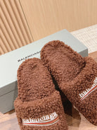 FURRY SLIDES IN BROWN CURLY SHEARLING