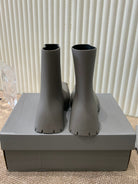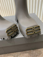 MATTE GRAY SCULPTED RUBBER BOOTS WITH GOLD MONOGRAM