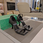 OPEN-TOE CURVED HIGH HEEL SANDALS IN BLACK SMOOTH CALFSKIN