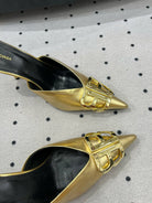 POINTED BB GOLD BUCKLE HEELED SLINGBACK IN GOLD METALLIC SHINY CALFSKIN