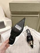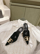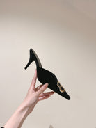 POINTED BB GOLD BUCKLE HIGH MULES IN BLACK VELVET