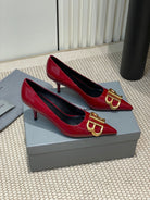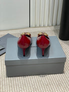 POINTED BB GOLD BUCKLE HIGH PUMPS 60MM IN RED PATENT CALFSKIN