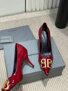 POINTED BB GOLD BUCKLE HIGH PUMPS 80MM IN RED PATENT CALFSKIN