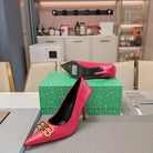 POINTED BB GOLD BUCKLE HIGH PUMPS IN RED CROCODILE PATTERN CALFSKIN