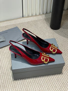 POINTED BB GOLD BUCKLE HIGH SLINGBACK 60MM IN RED PATENT CALFSKIN
