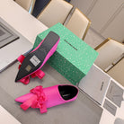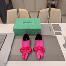 POINTED-TOE FLATS WITH BOW IN HOT PINK SOFT LAMBSKIN