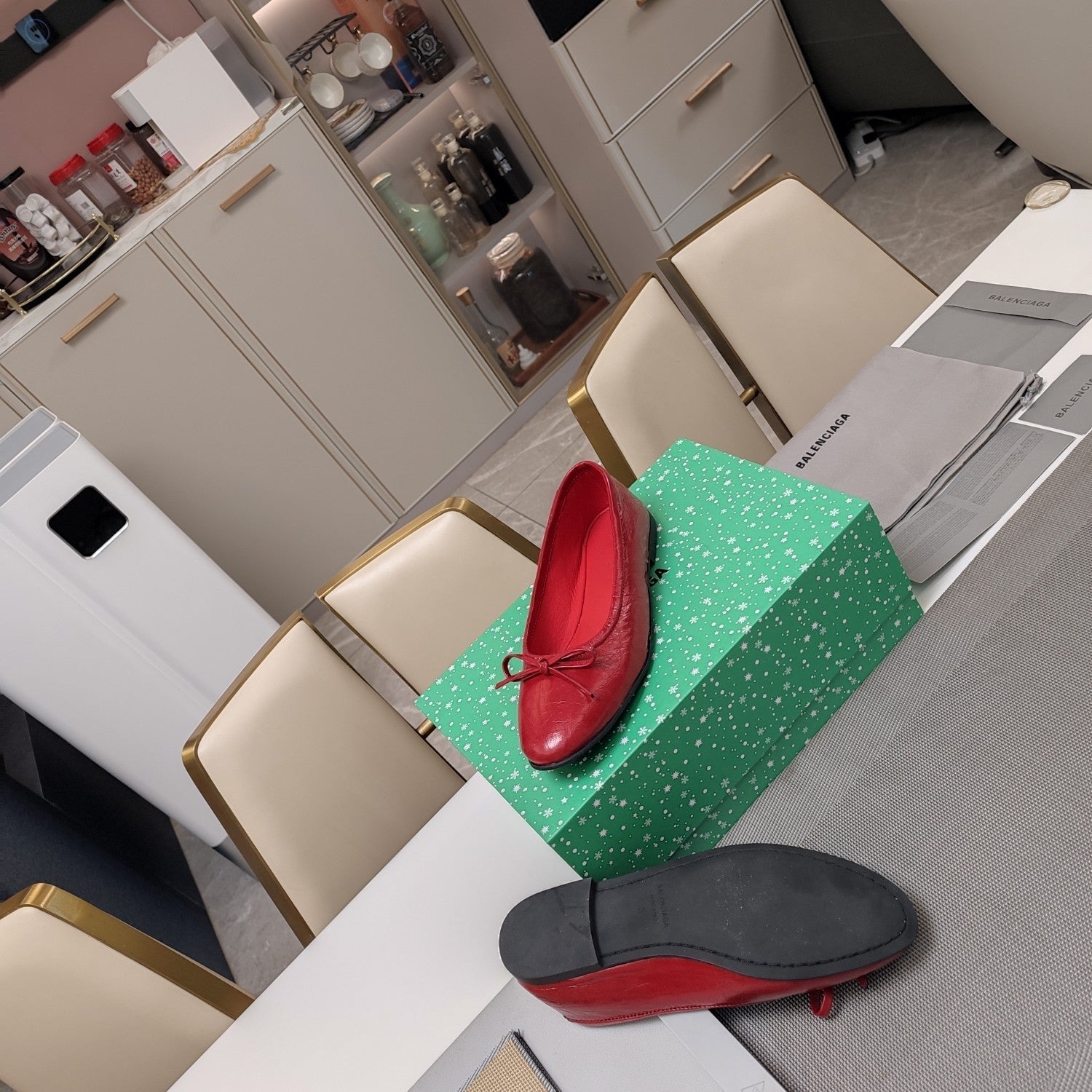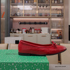 RHINESTONE BALLET FLATS WITH BOW IN RED WAX-OIL SHEEPSKIN