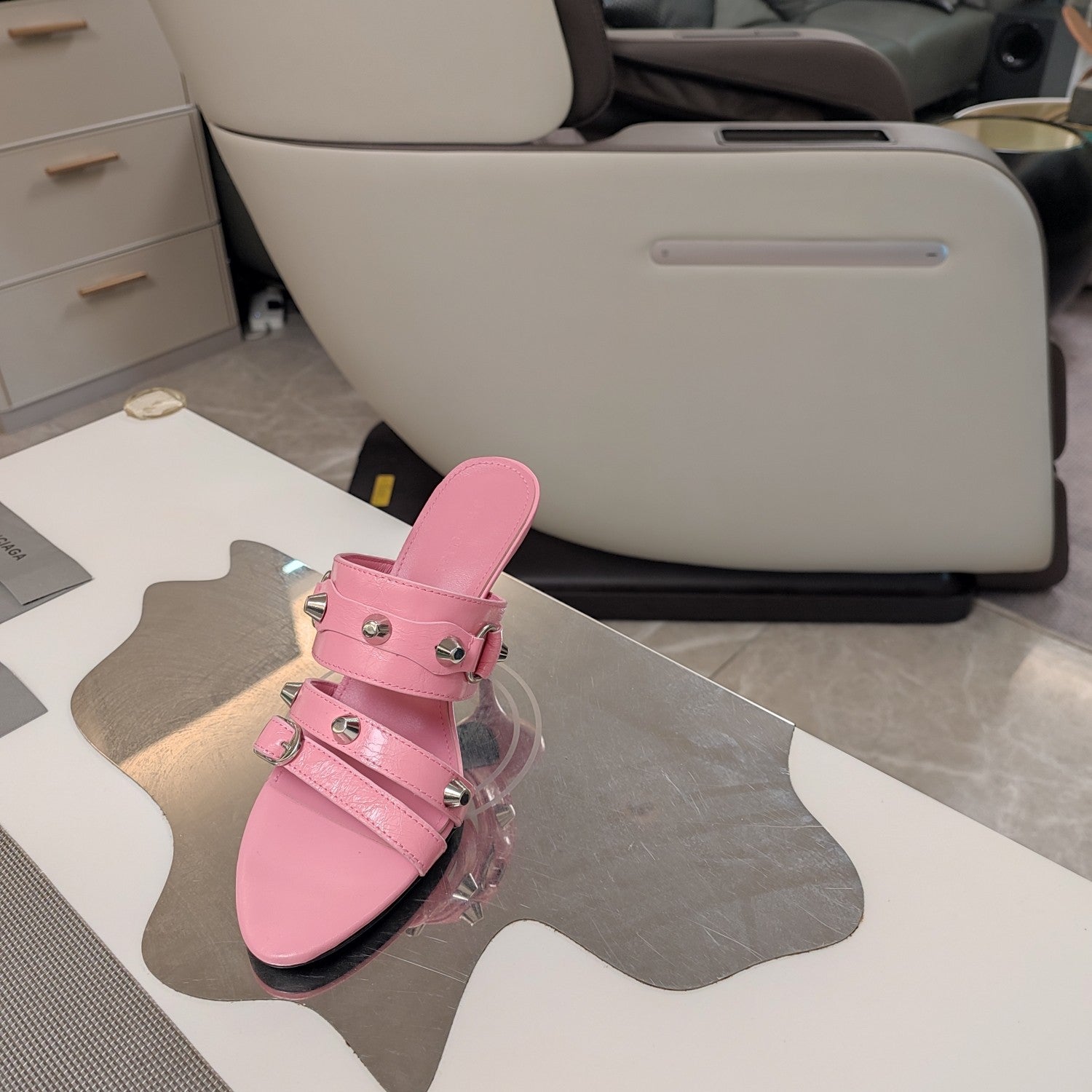 STRAPPY HIGH-HEELED SANDALS IN WEWAK PINK STUDDED WAX-OIL SHEEPSKIN
