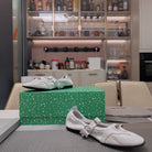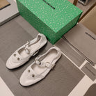 STUDDED MARY JANE FLATS IN WHITE SHINY LAMBSKIN