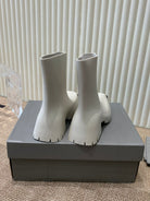 WHITE SCULPTED RUBBER BOOTS WITH GOLD MONOGRAM
