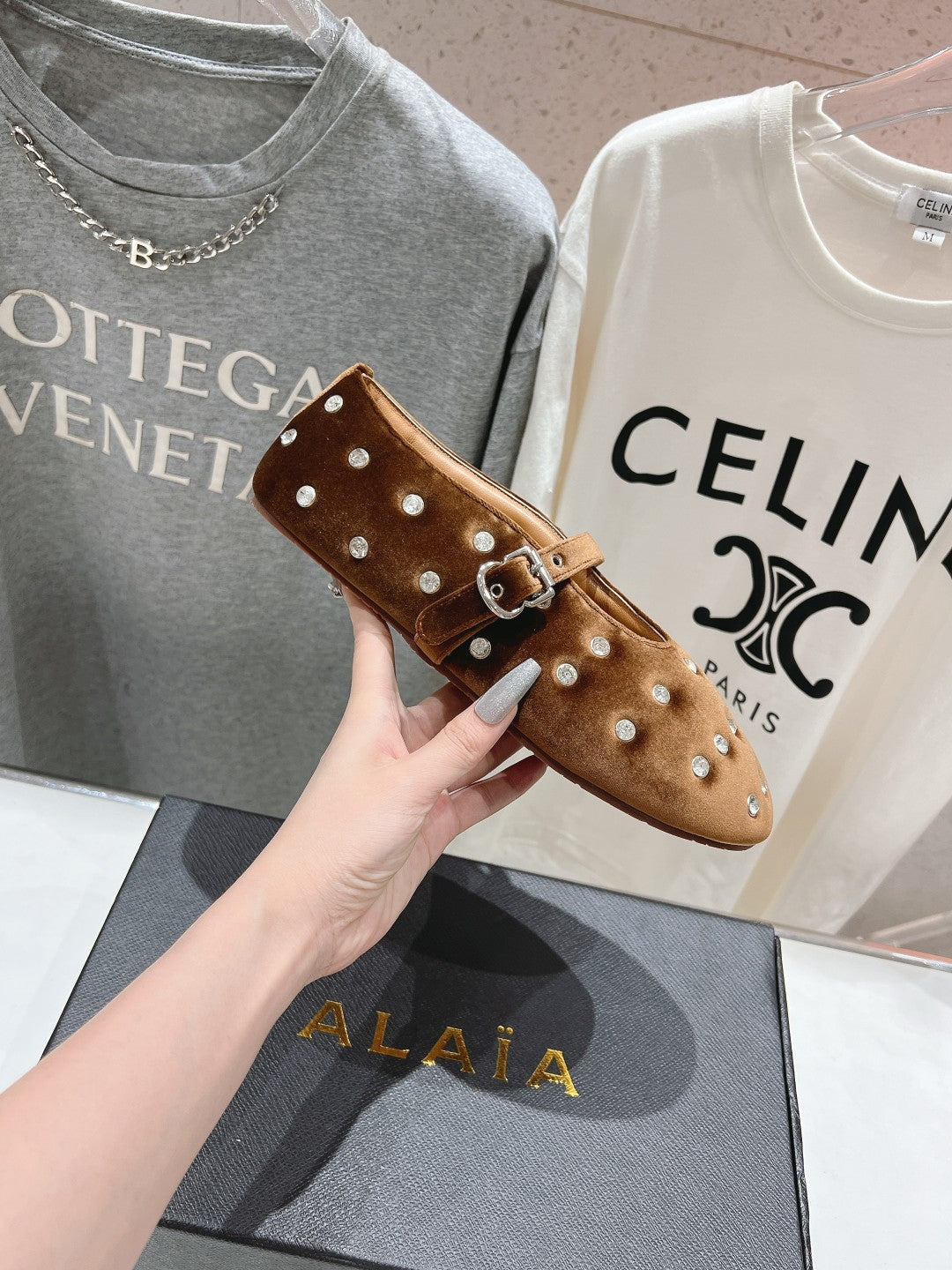 Alaila Ballet Flats In Moss Brown Velvet With Rhinestones 971998