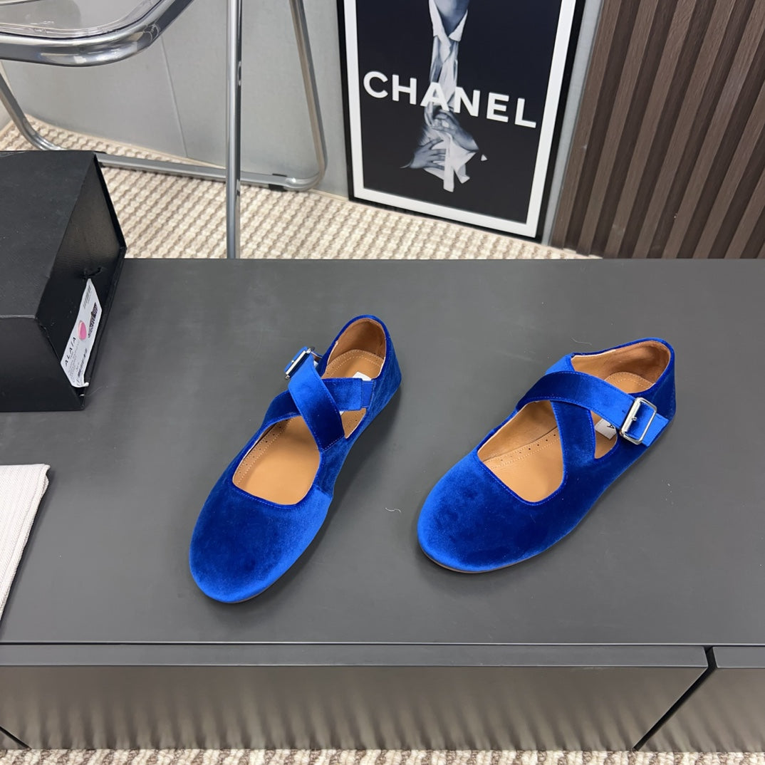Alaila Criss Cross Ballet Flats In Blue Velvet 996045