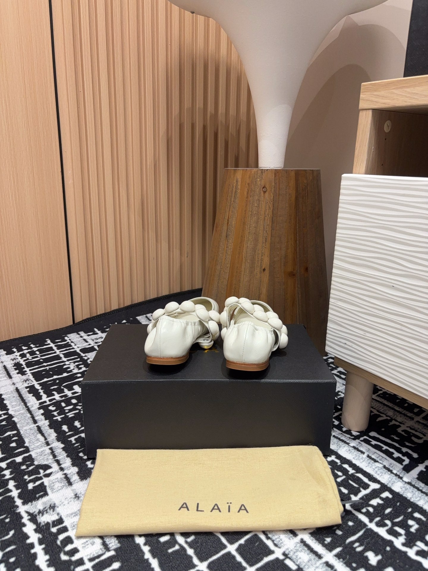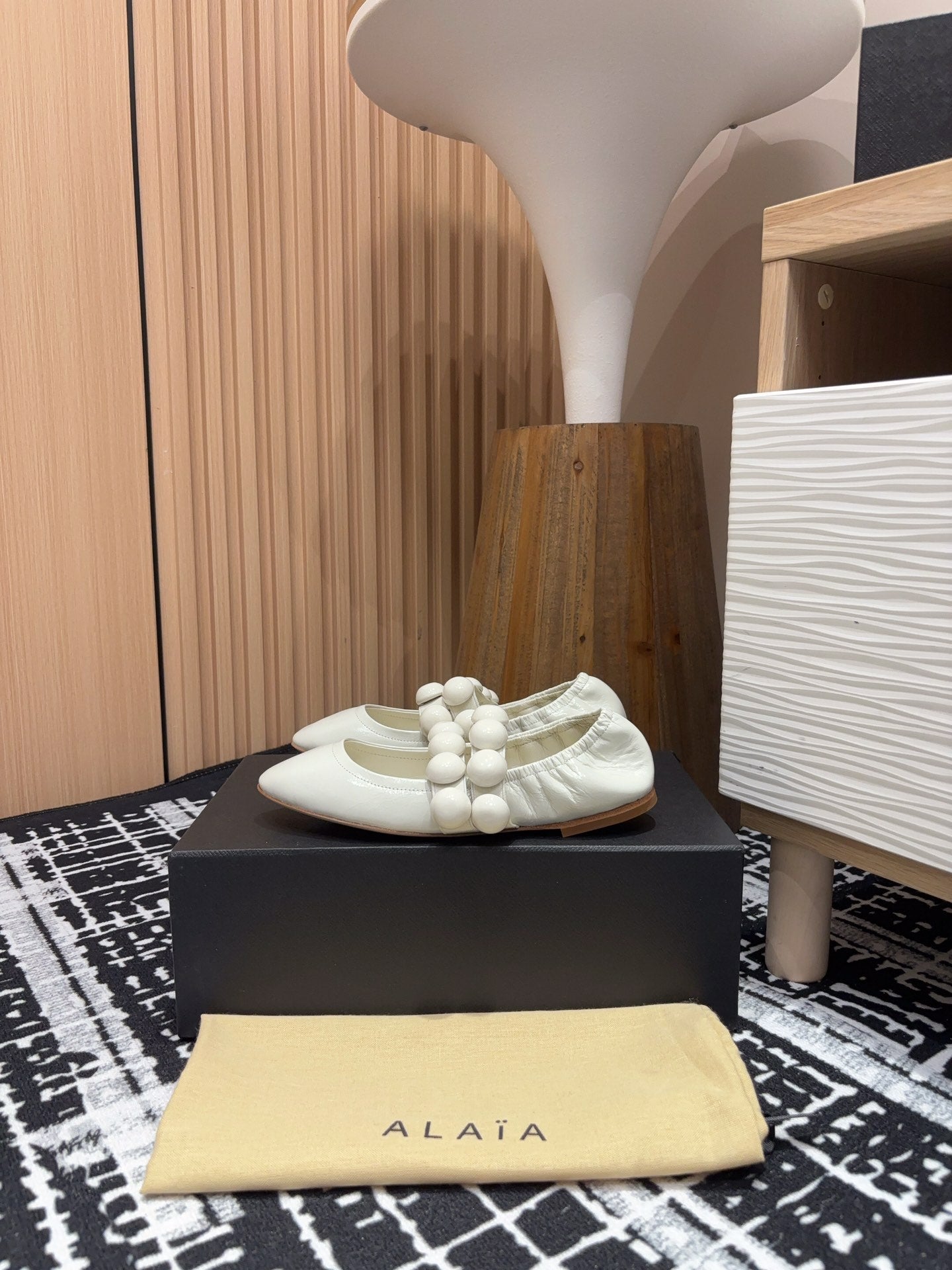 Alaila Sphere Ballet Flats In White Glossy Calfskin 964201