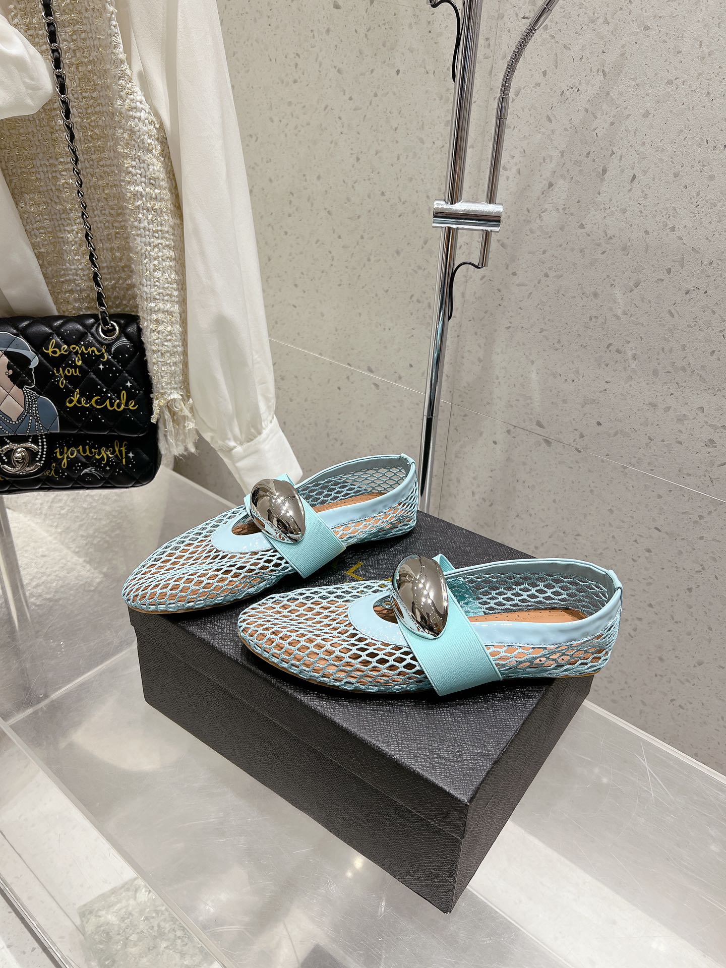 ballet flat jewel fishnet sky blue lambskin