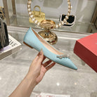 Viv 25 Crystal Diamond Buckle Flats Blue Silk Satin 235394