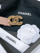 CHANEL BELT 3CM IN ROSY BROWN LAMBSKIN GOLD HARDWARE