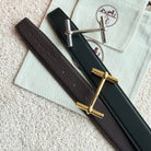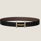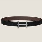 HM H d'Ancre Buckle Belt 32mm Black Chocolate Leather 187773