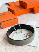HM Silver Tube H Buckle Belt 38mm Meyer gray Leather 187782