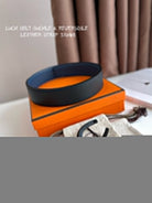 LUCK BELT BUCKLE & REVERSIBLE NAVY BLUE LEATHER STRAP 38MM BLACK HARDWARE