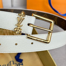 LV Bloom 30mm Belt Gold Buckle White Brown Leather
