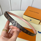 LV Circle Nautical 20mm Reversible Belt Silver Buckle Pink Brown Lambskin