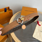 LV Flowergram Round 30mm Reversible Belt Brown Empreinte Calfskin