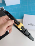 Triomphe Belt 18mm Black Calfskin Gold Buckle
