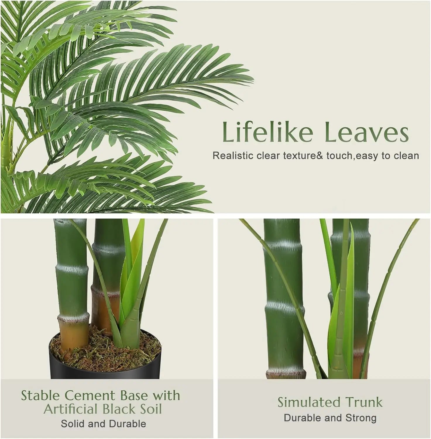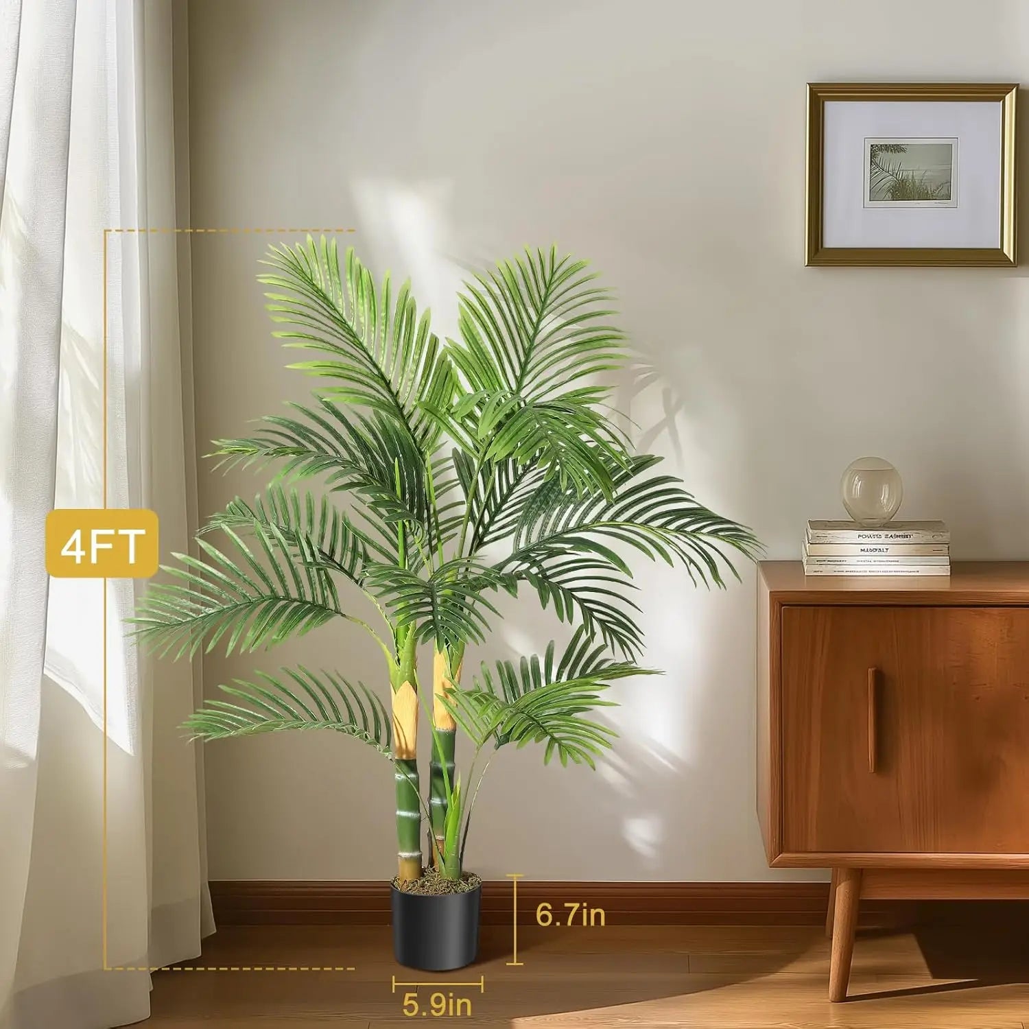 Enhance your living space with our stunning 4-foot Artificial Golden Cane Palm Tree. This lifelike palm tree features 14 detailed fronds, each carefully crafted with feather-like leaves and realistic textures. Designed from high-quality PVC and PE materials, it promises durability, UV resistance, and lasting freshness without fading or aging.