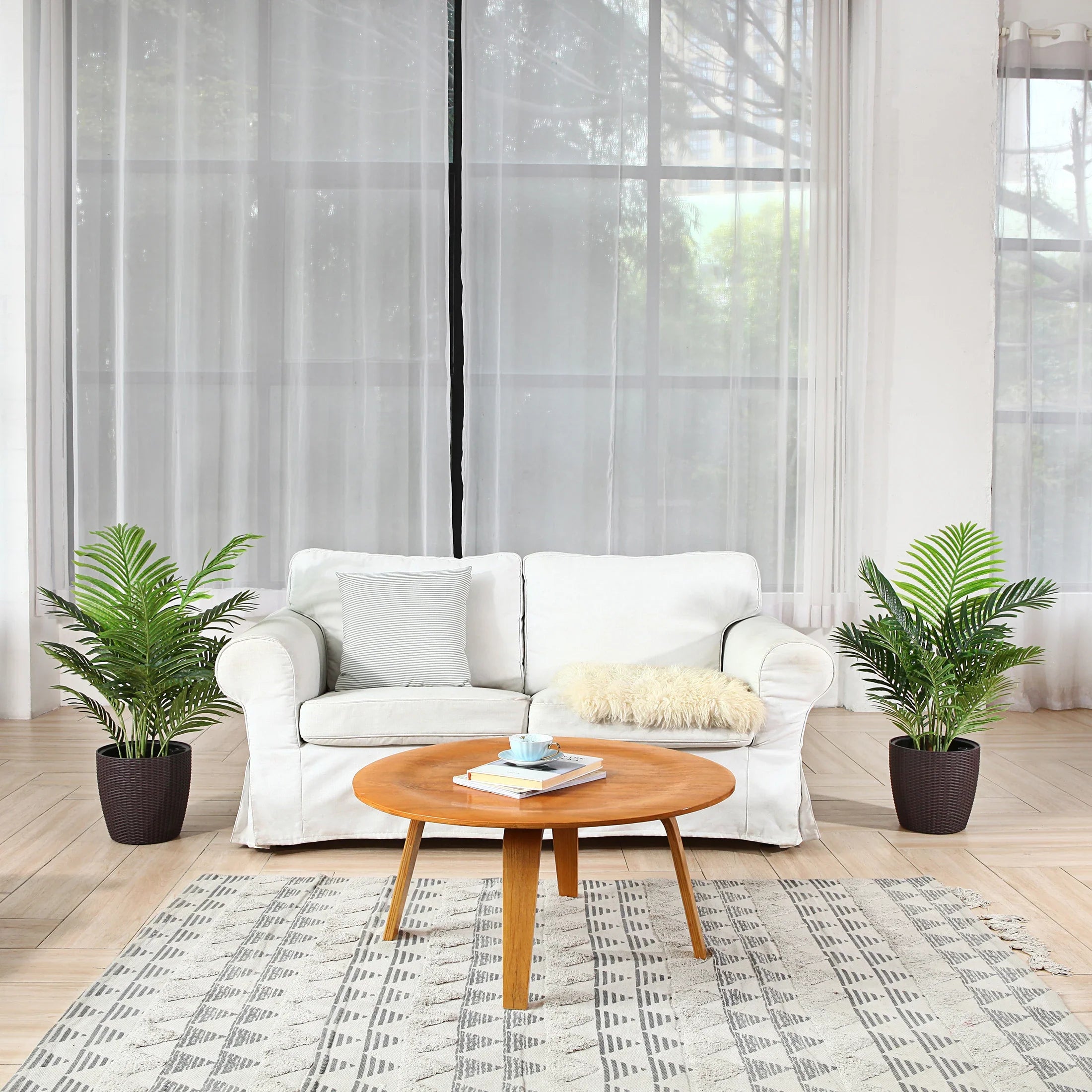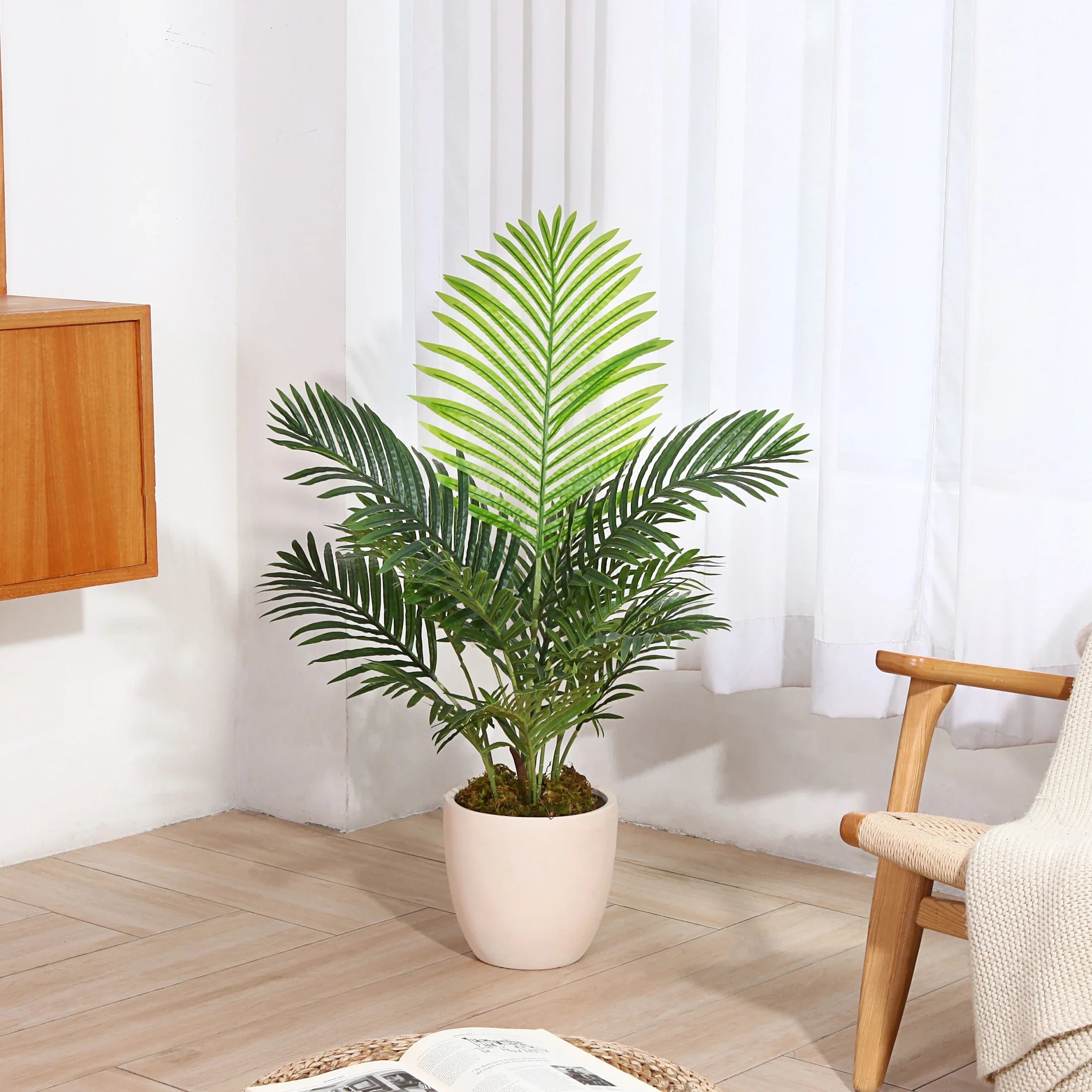 Ideal for anniversaries, exhibitions, or everyday home decor, this artificial areca palm provides lasting beauty without fading or deteriorating. Lightweight yet stable, it is easily positioned on floors, enhancing living rooms, patios, or commercial spaces with an organic touch. Enjoy the lush look of greenery without maintenance or mess.