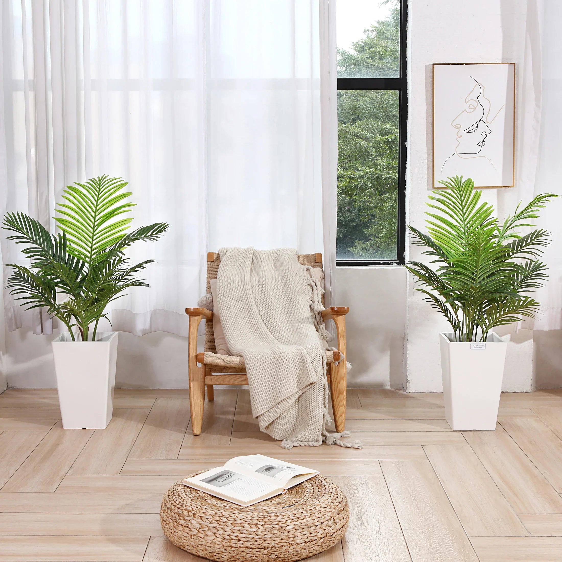 Crafted by KAZEILA from premium silk, this artificial palm tree is designed for both indoor and outdoor scenarios. Easy assembly and reshaping instructions included, ensuring it arrives in perfect condition and ready to beautify your space instantly.