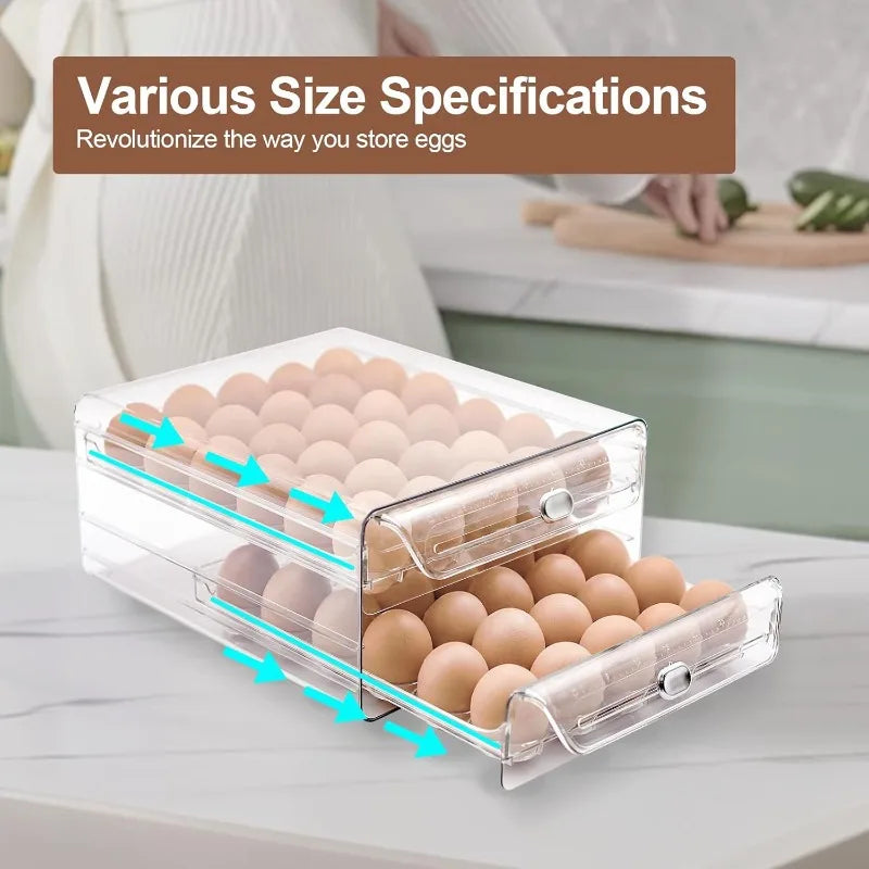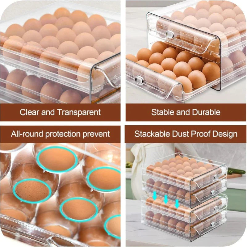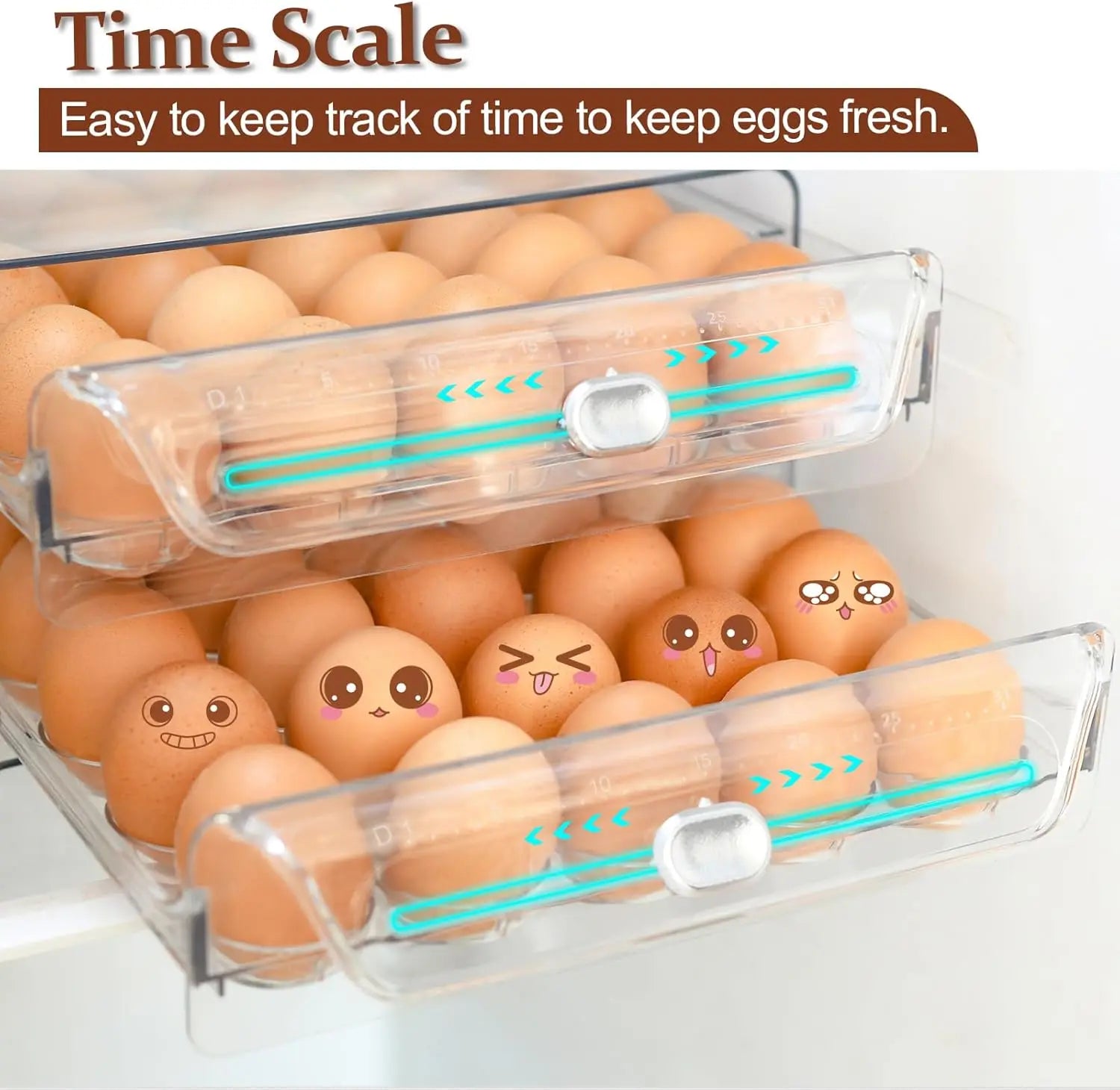 Clear 60-Egg Storage Drawer – Stackable 2-Layer Organizer for Refrigerator with Freshness Tracker