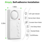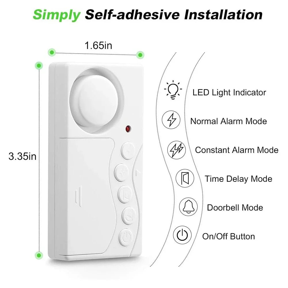 The brand of this alarm is WSDCAM, and the model is Window Alarm. It has CE certification and operates using two AAA batteries (not included). The compact size of this device is 3.4 inches by 1.7 inches by 0.6 inches. It does not integrate with any smart home platforms, but its ABS plastic material ensures durability. The alarm produces a loud 108 dB sound for effective alerts.