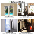 This device is not only a freezer alarm, but also a home security alarm. It alerts you to unauthorized door openings, making it ideal for extra protection in your home. With four different operating modes, it adapts to your needs. The Time Delay Alarm progressively increases in sound from 0 dB to 108 dB if the door remains open beyond the set time. The General Alarm sounds while the door is open and stops when it is closed. The Constant Alarm remains active even if the door is closed, and the Door Open Chime plays a "DingDong" sound when the door is opened.