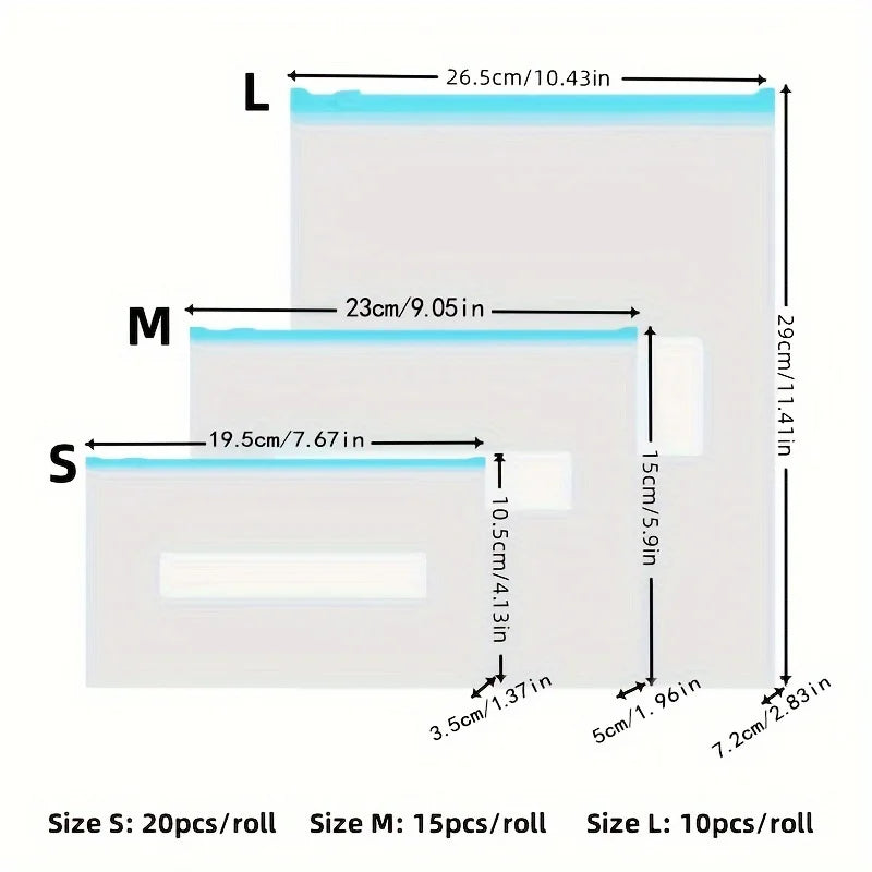 Featuring a **durable zip-lock design**, these **multipurpose storage bags** are perfect for **meal prep, freezer storage, and pantry organization**. The **transparent design** allows you to **quickly identify contents**, while the **waterproof and tear-resistant material** ensures long-lasting use. Available in **three convenient sizes**, these storage bags adapt to all your kitchen needs.