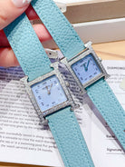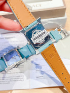 HM HEURE H 26 SILVER BLUE DIAL DIAMOND BEZEL EPSOM LEATHER