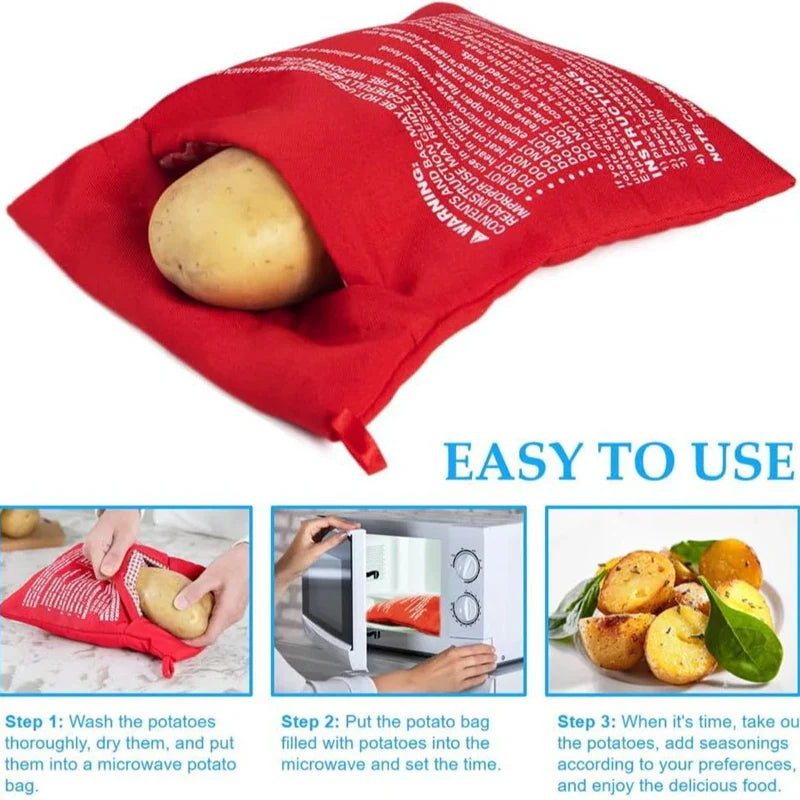 To use, simply wash and dry the potatoes, place them in the bag, and microwave. Once cooked, remove with care using heat-insulated gloves. Enjoy perfectly baked, mashed, or sweet potatoes every time.