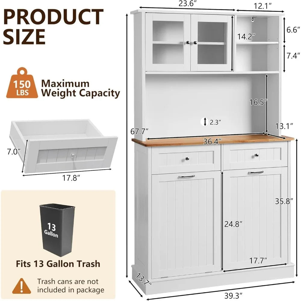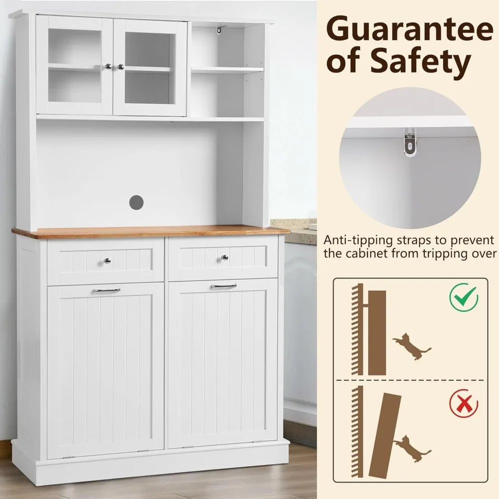 Designed with **durability and convenience in mind**, this **wooden pantry cabinet** includes **multiple enclosed cabinets, a spacious countertop, and smooth-glide drawers** for effortless storage. Use it as a **microwave stand, a coffee station, or a sideboard buffet** to keep your kitchen neat and organized. The **tilt-out trash cabinet** discreetly hides waste while maintaining a clean look.