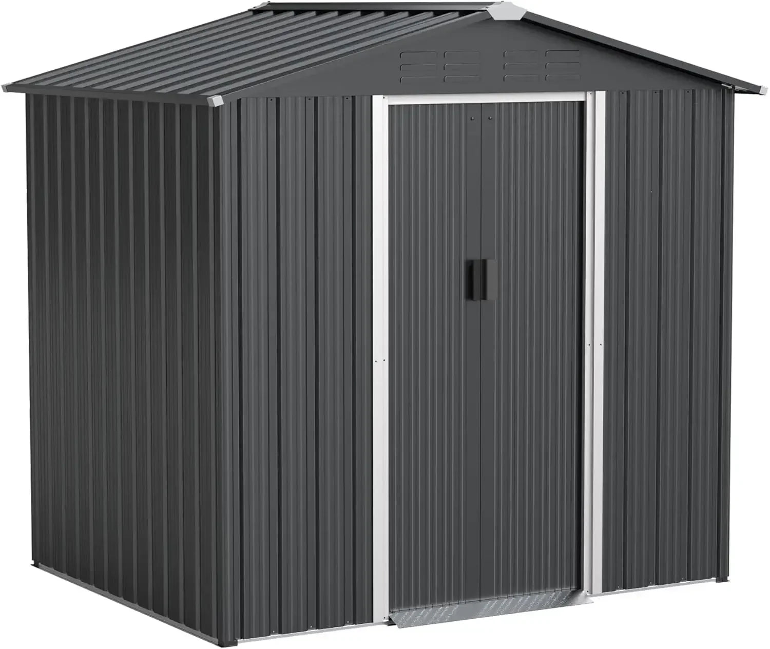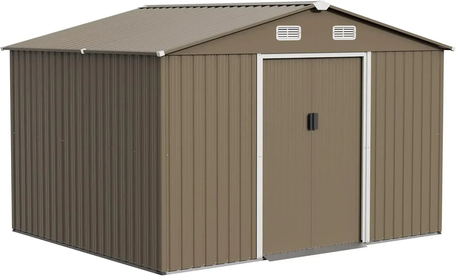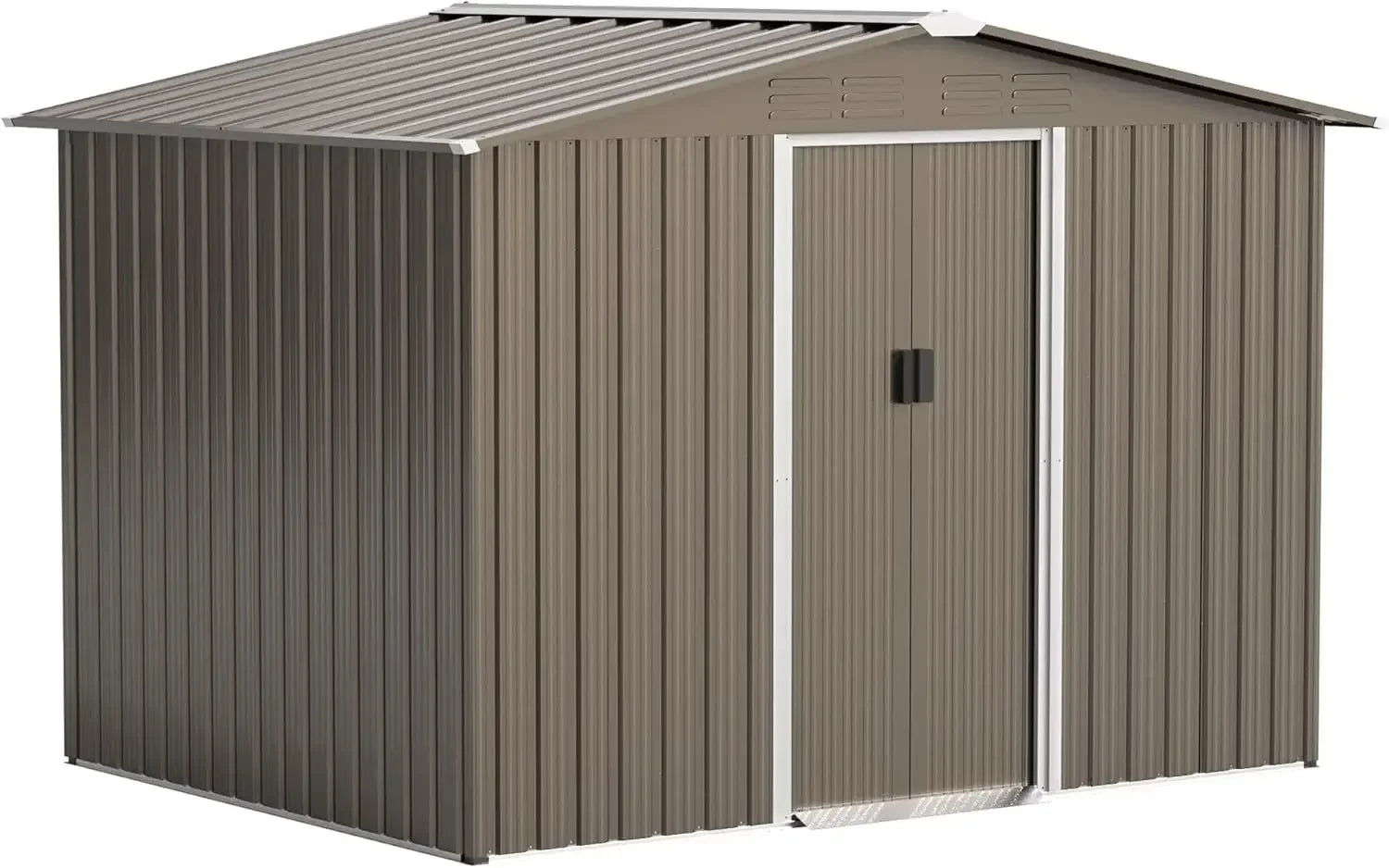 Lockable Metal Tool Shed with Sliding Door and Air Vents