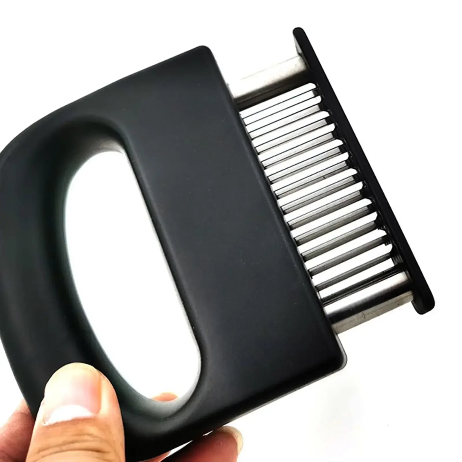 The Meat Tenderizer with 48 stainless steel needles is an essential kitchen tool for softening meat, reducing cooking time, and enhancing marinade absorption. Its ergonomic design ensures ease of use, making it a must-have for steak, chicken, and more.