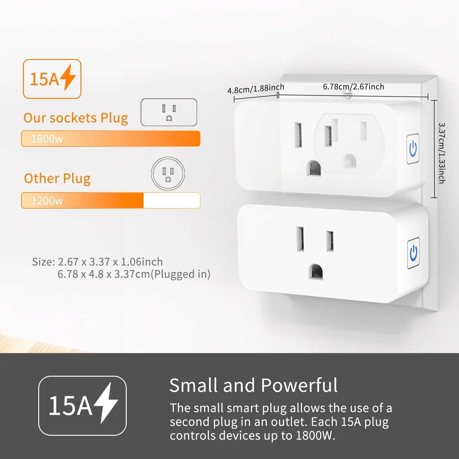 Smart Plug Mini with Energy Monitoring - 2.4G Wi-Fi Outlets Compatible with Alexa, Google Assistant, SmartThings & Tuya