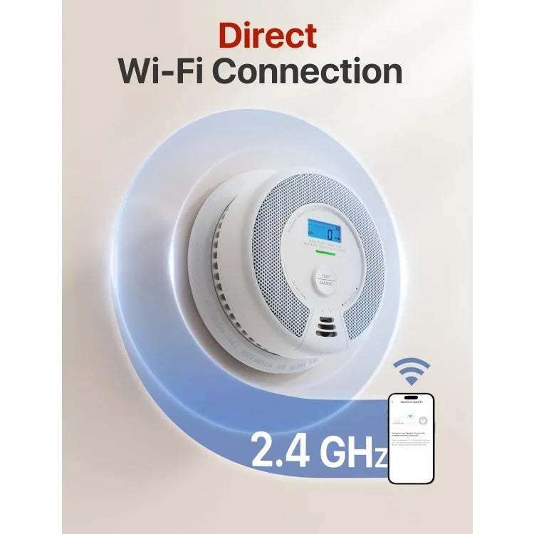 Stay protected with this 2-in-1 Smart Smoke and Carbon Monoxide Detector. Featuring Wi-Fi connectivity, real-time app notifications, and replaceable batteries, it offers enhanced safety for your home and loved ones.