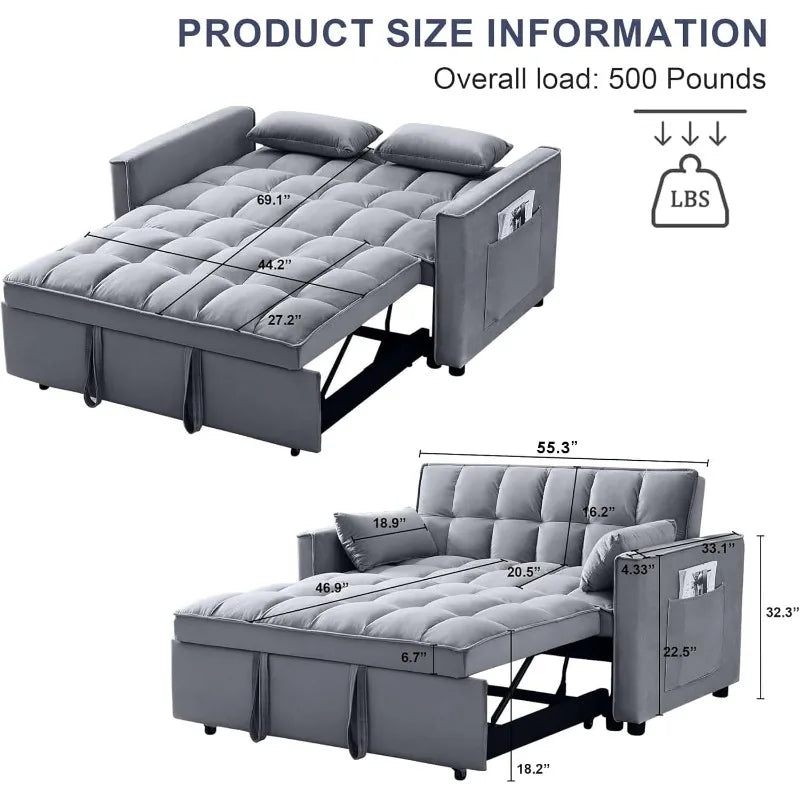 - 3-in-1 convertible design: Easily transforms from a sofa to a bed.