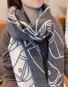 CASAQUE ENTRELACS EQUESTRES 190 CM SCARF IN SHADOW GRAY CASHMERE