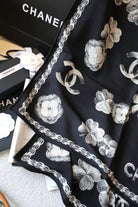 CC Scarf 180 CM In Black White Cashmere Silk 401134