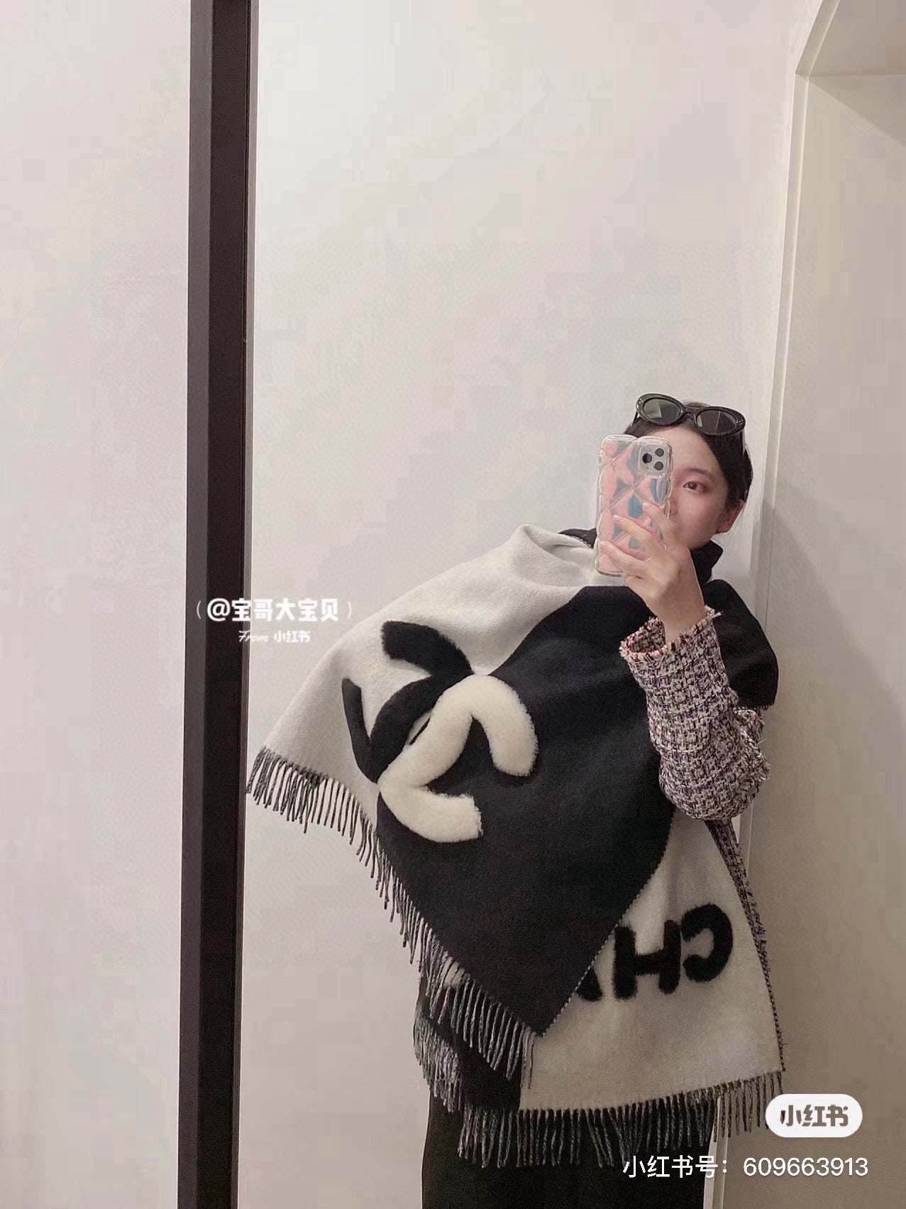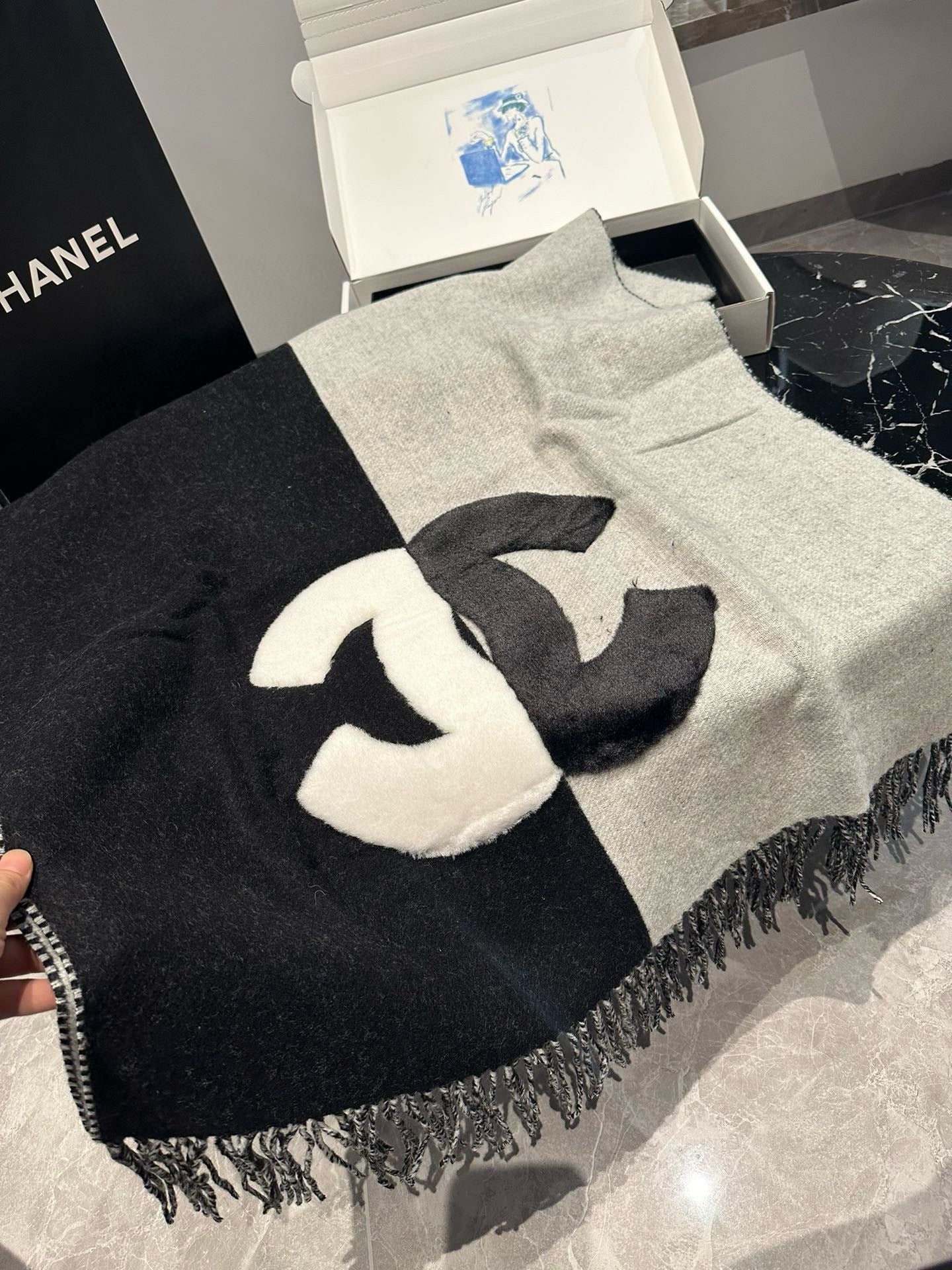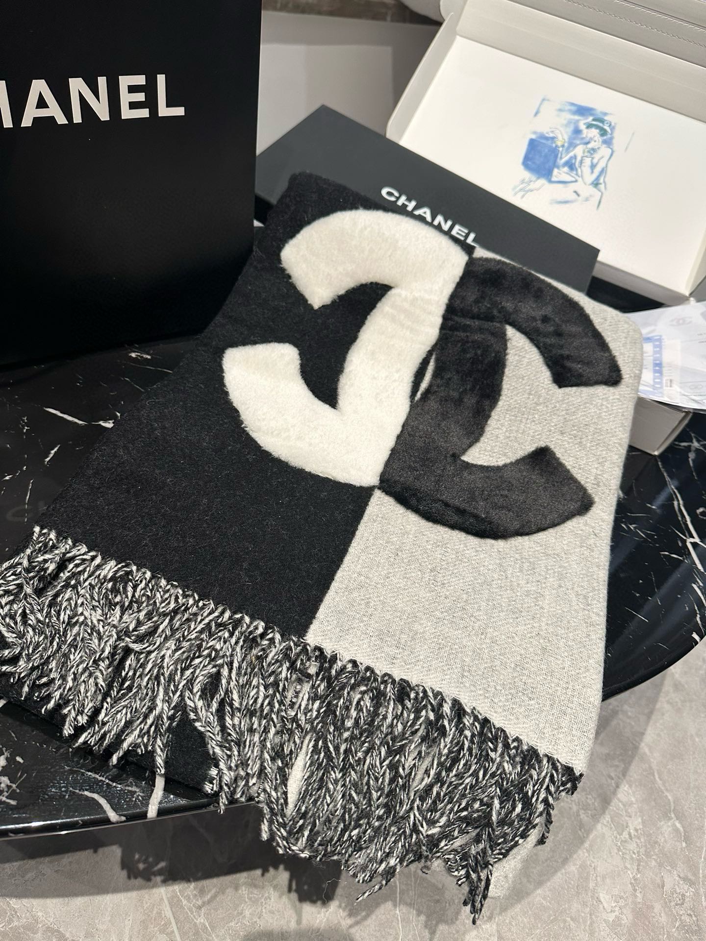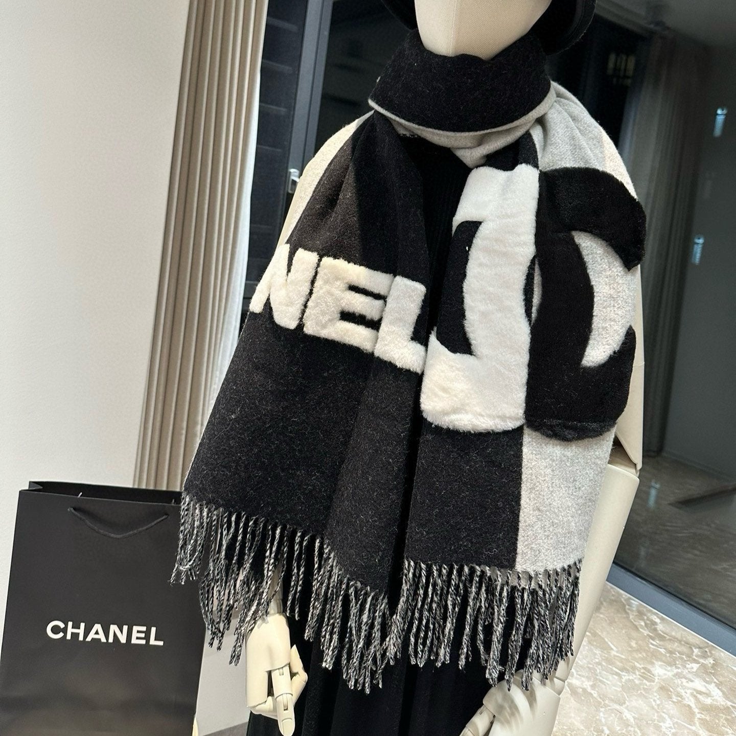 CC Scarf 200 CM In Black Mix White Fleece Wool 405155