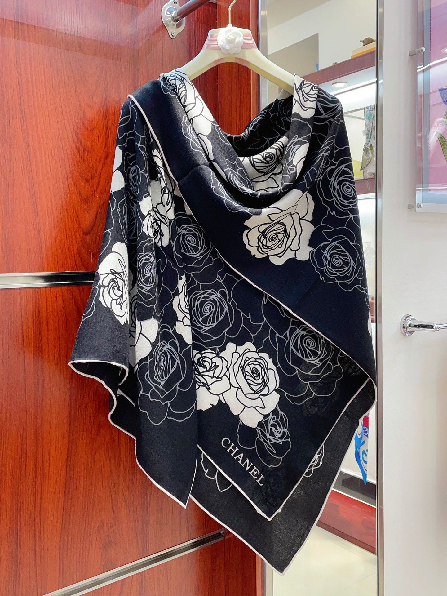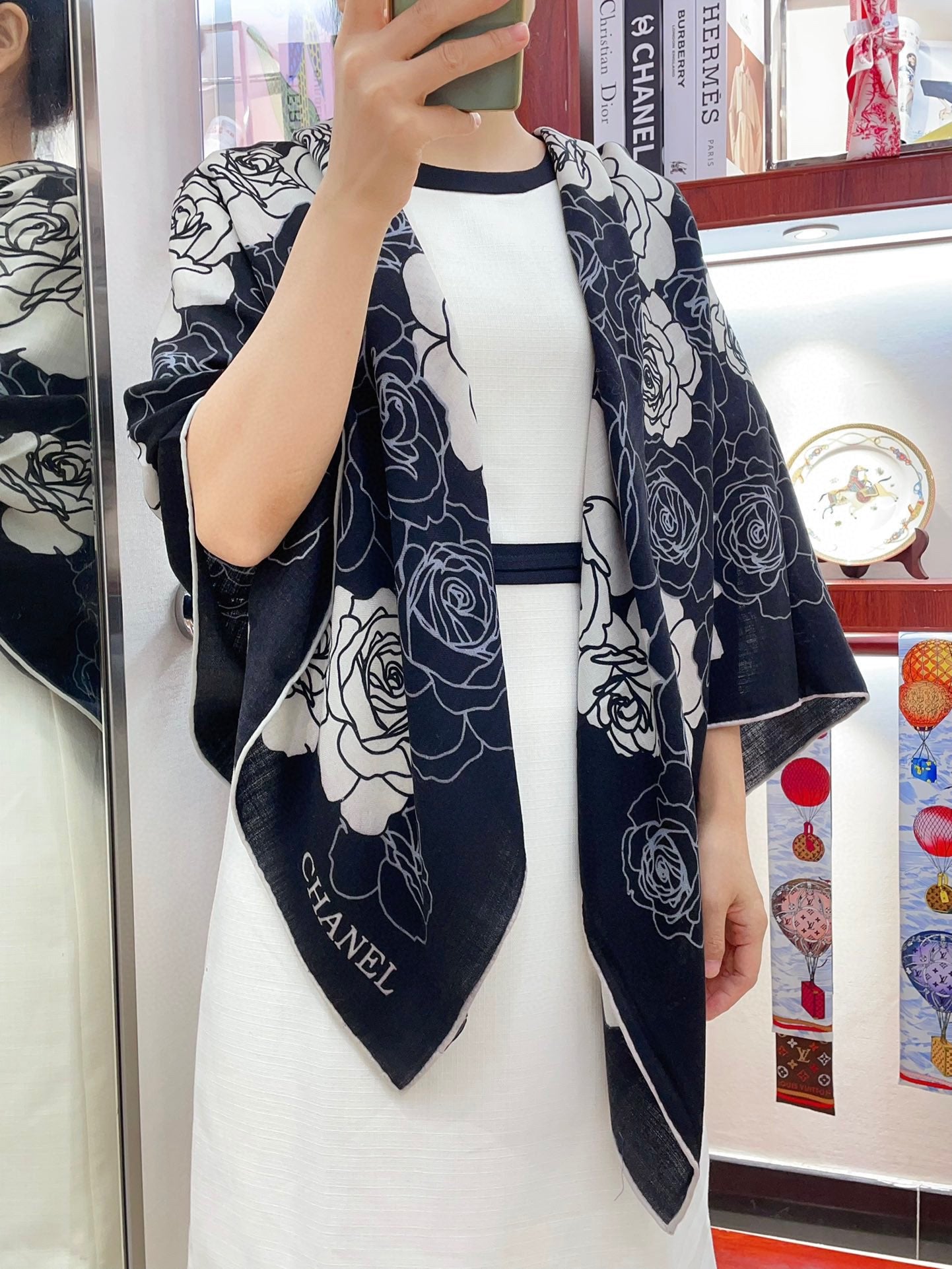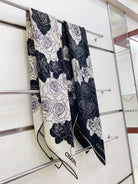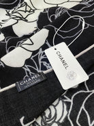 CC Square Scarf 140 CM In Black Mix White Small Flower Cashmere And Silk 342864