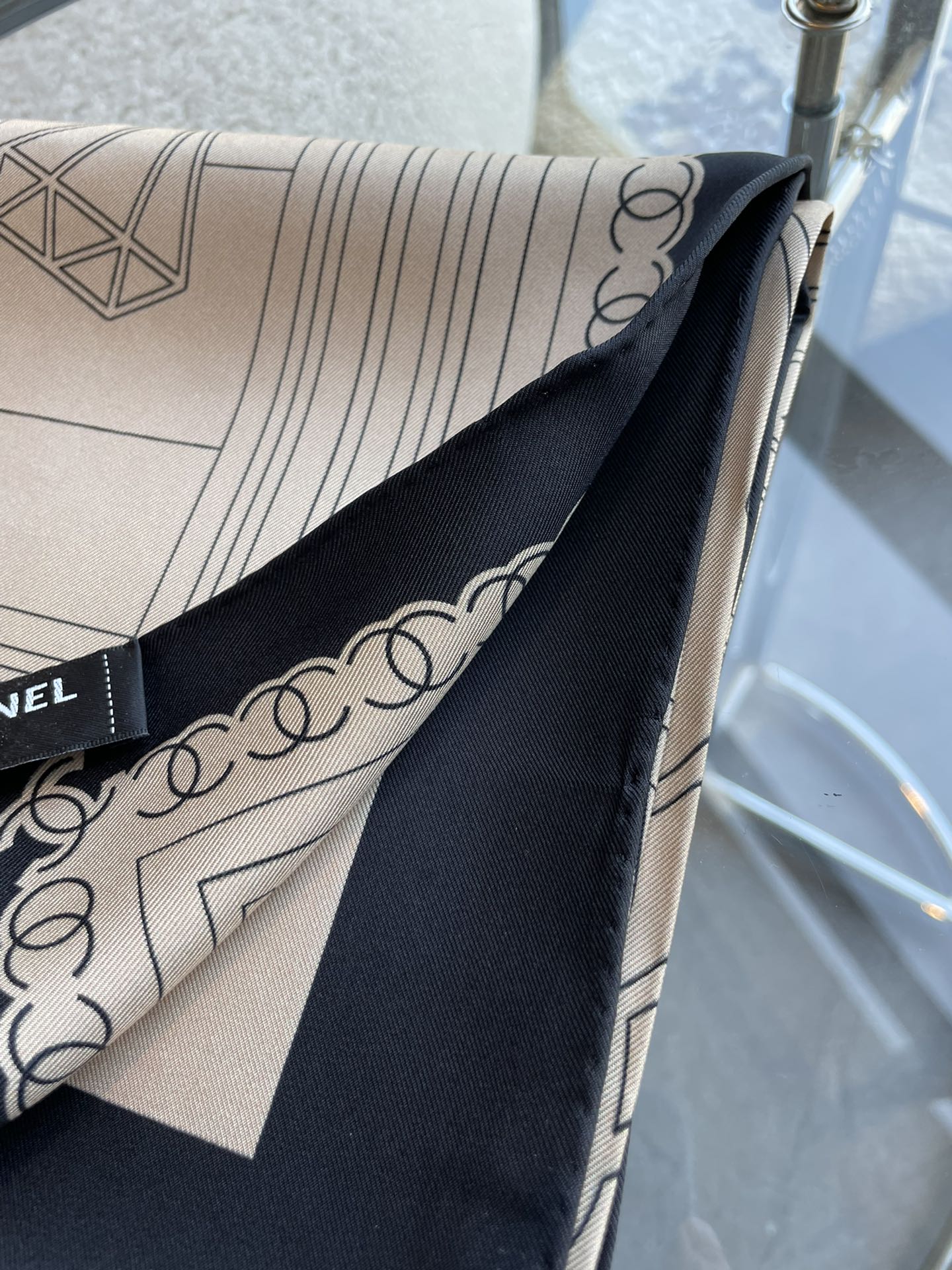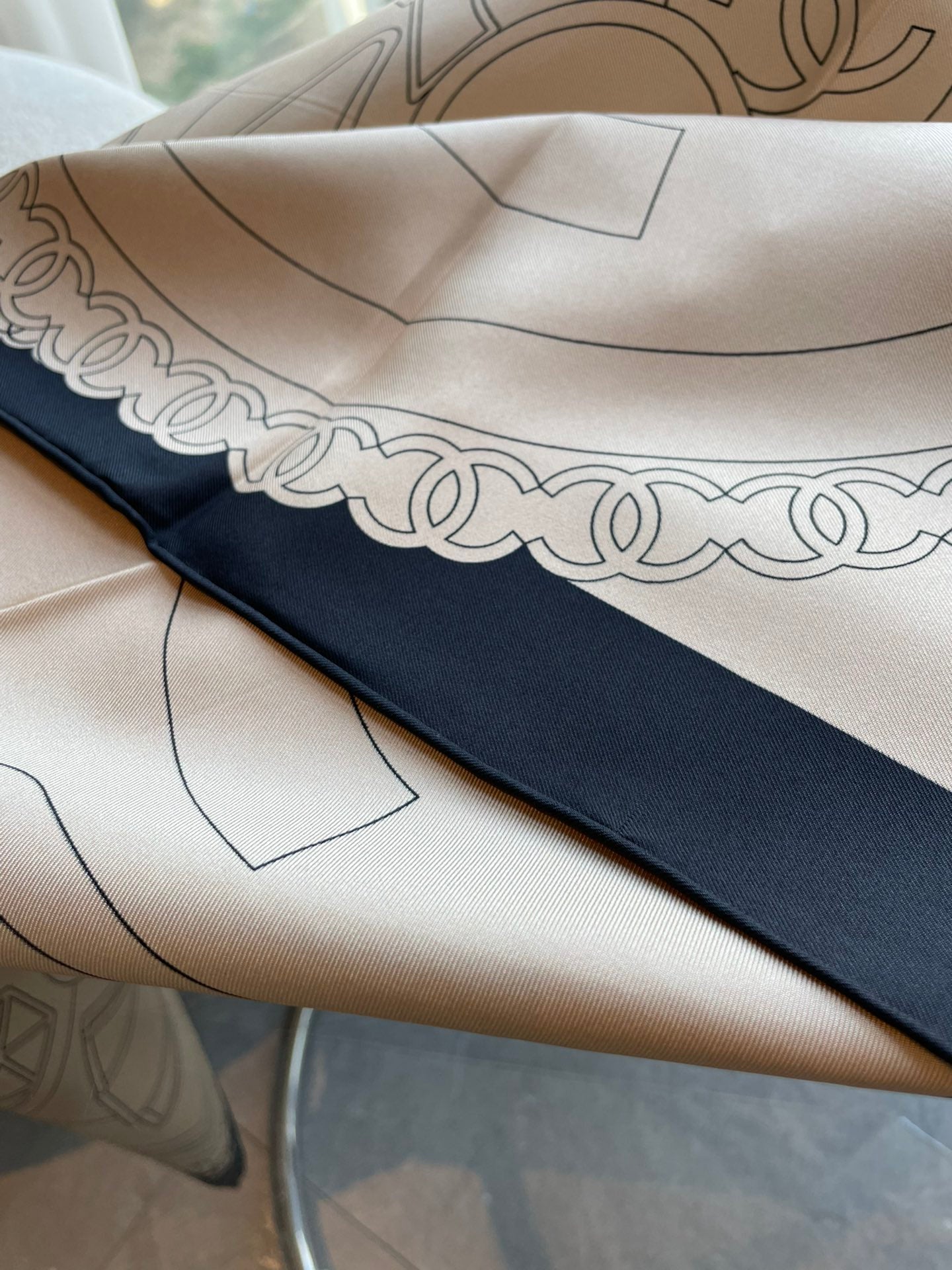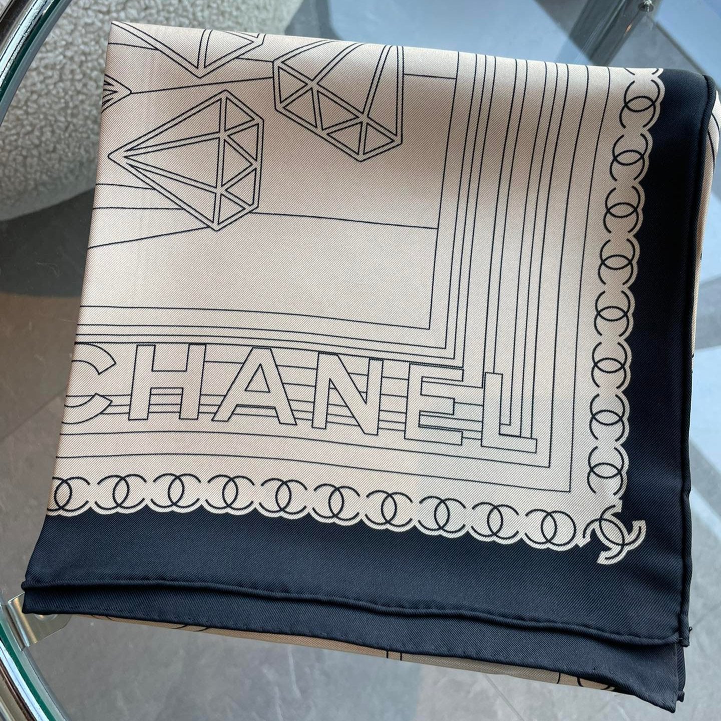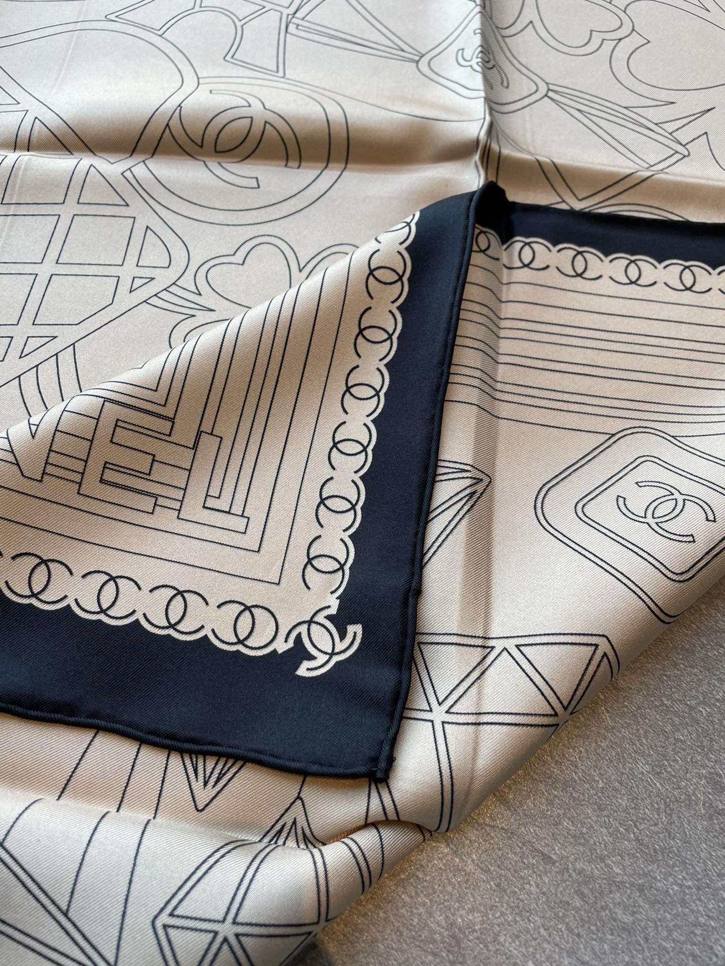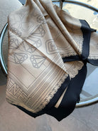CC Square Scarf 90 CM In Beige Mix Black Cashmere Silk 288708