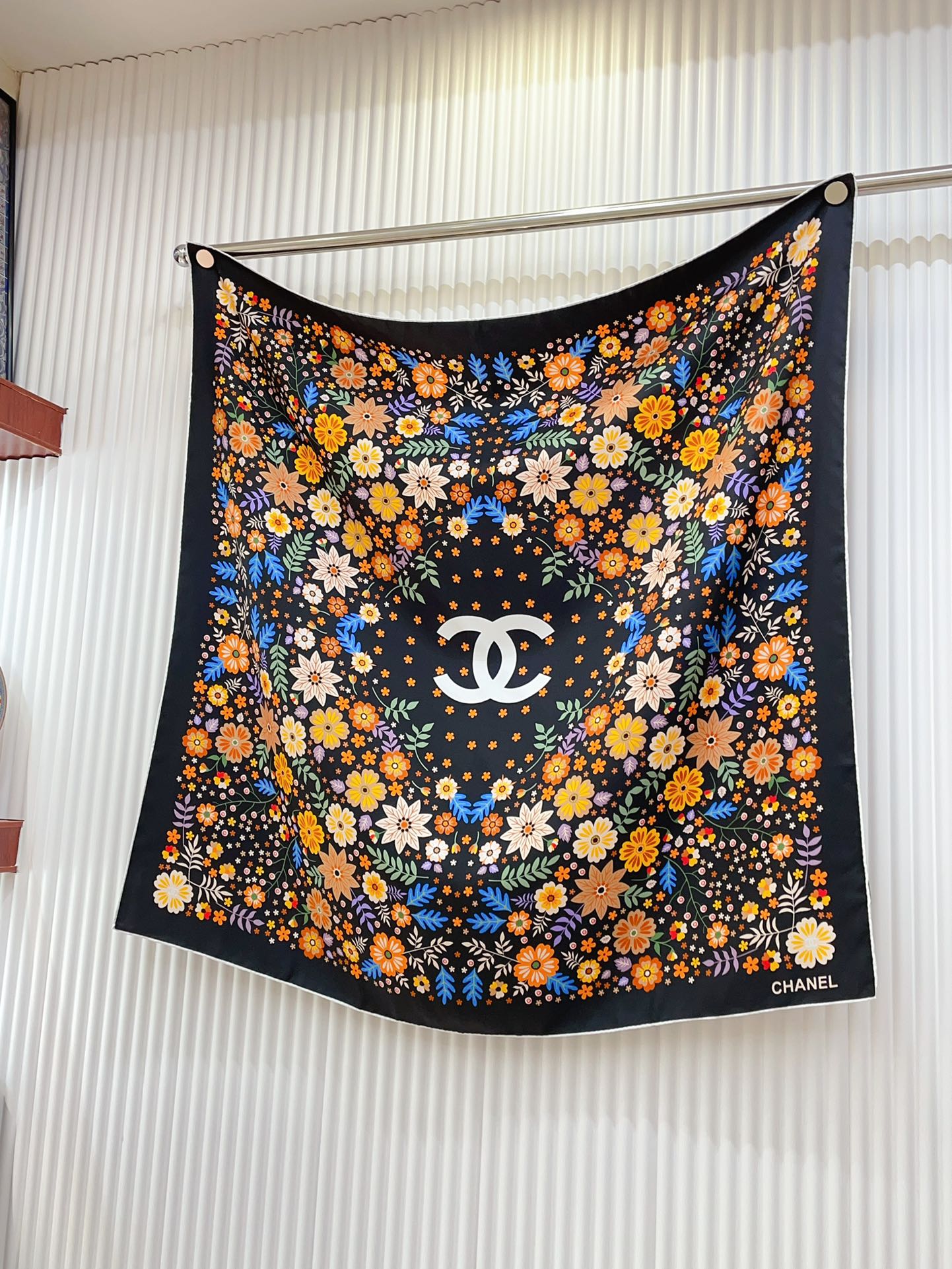 CC Square Scarf 90 CM In Black Colorful Silk Twill 234597