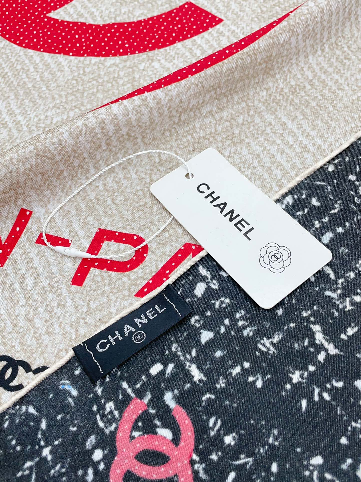 CC Square Scarf 90 CM In Black Mix Light Beige Red Cashmere Silk 172077