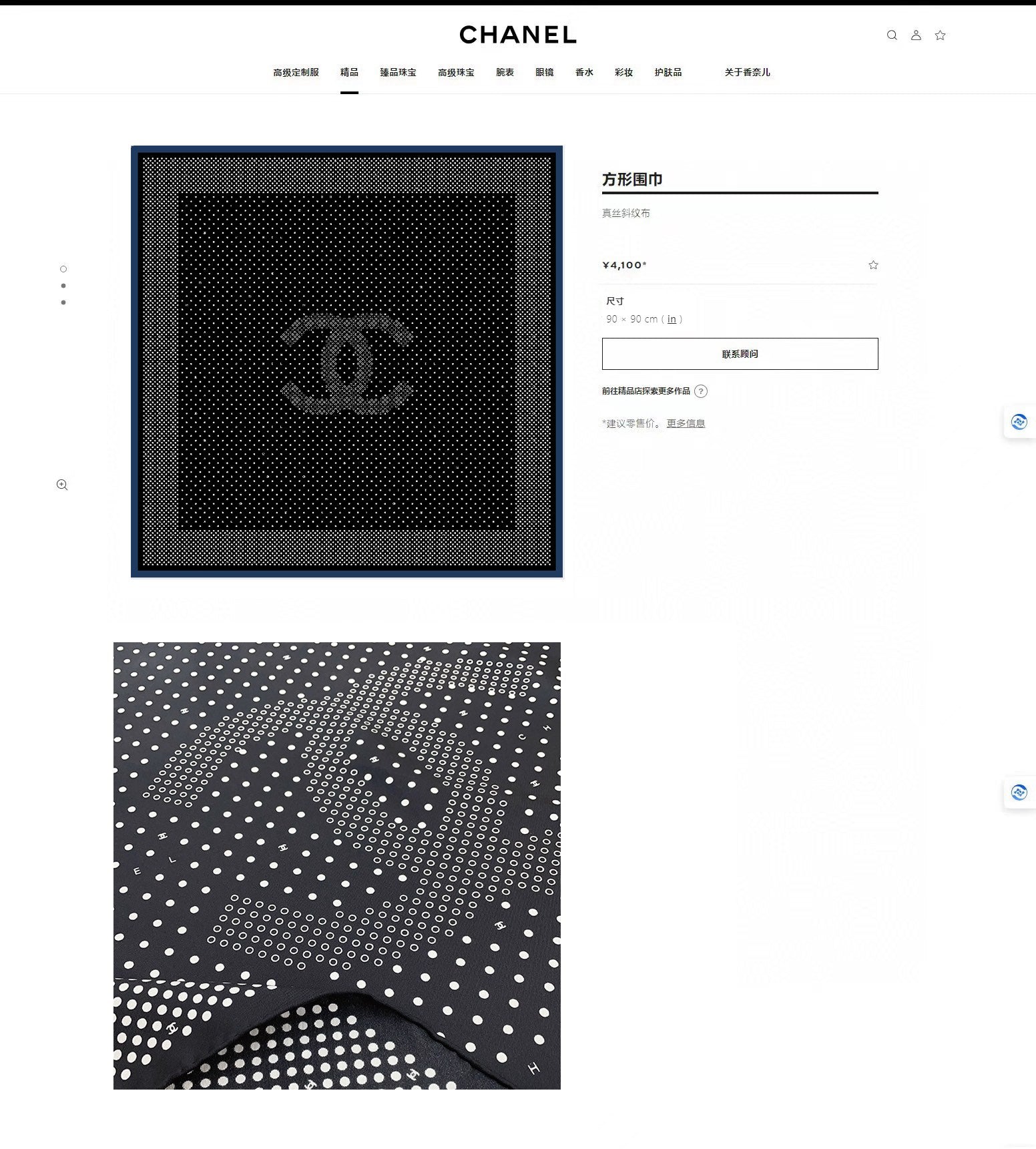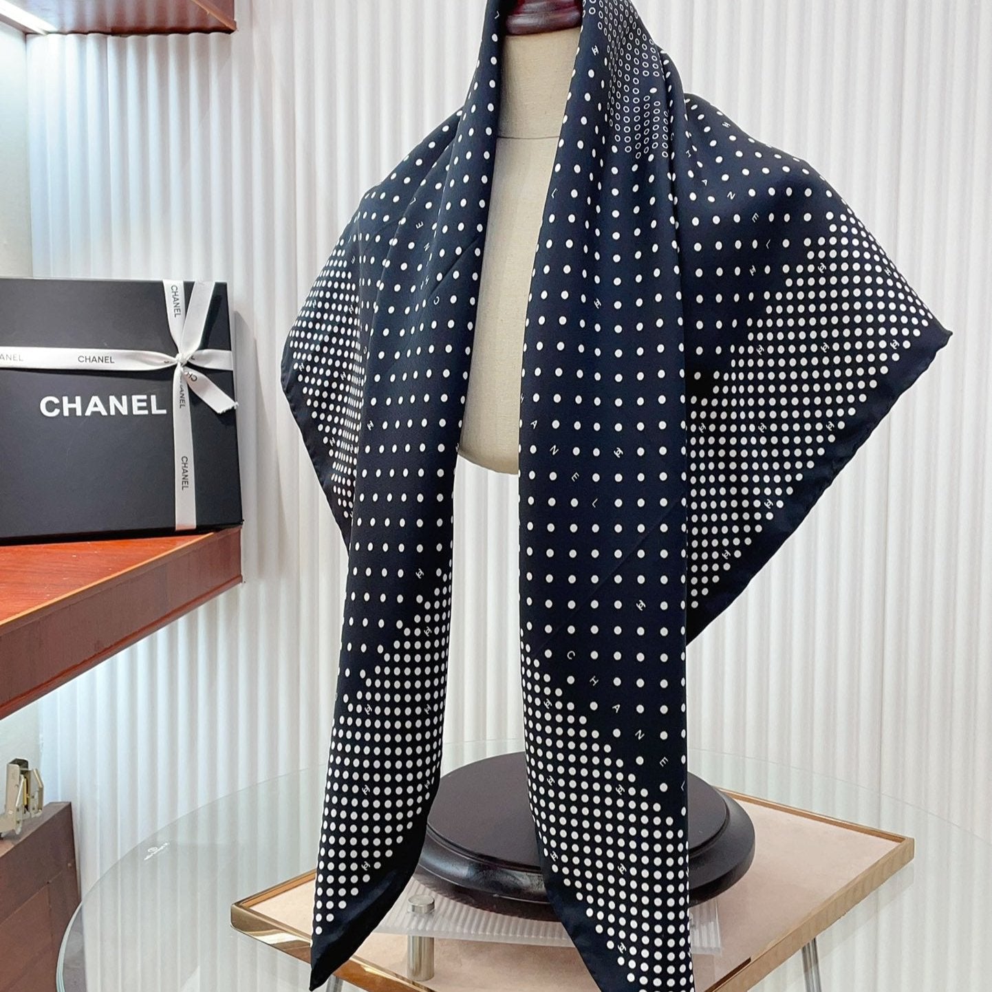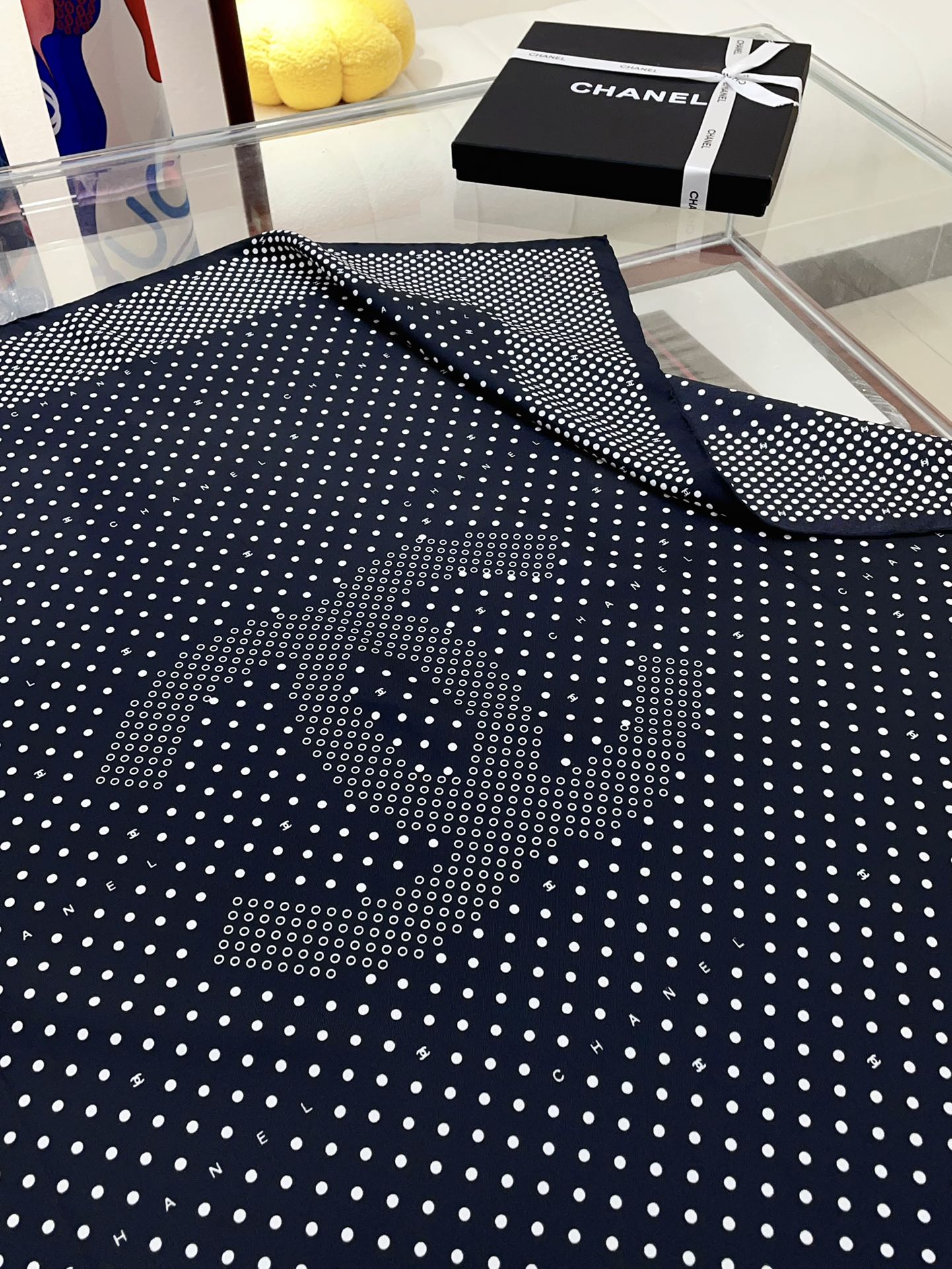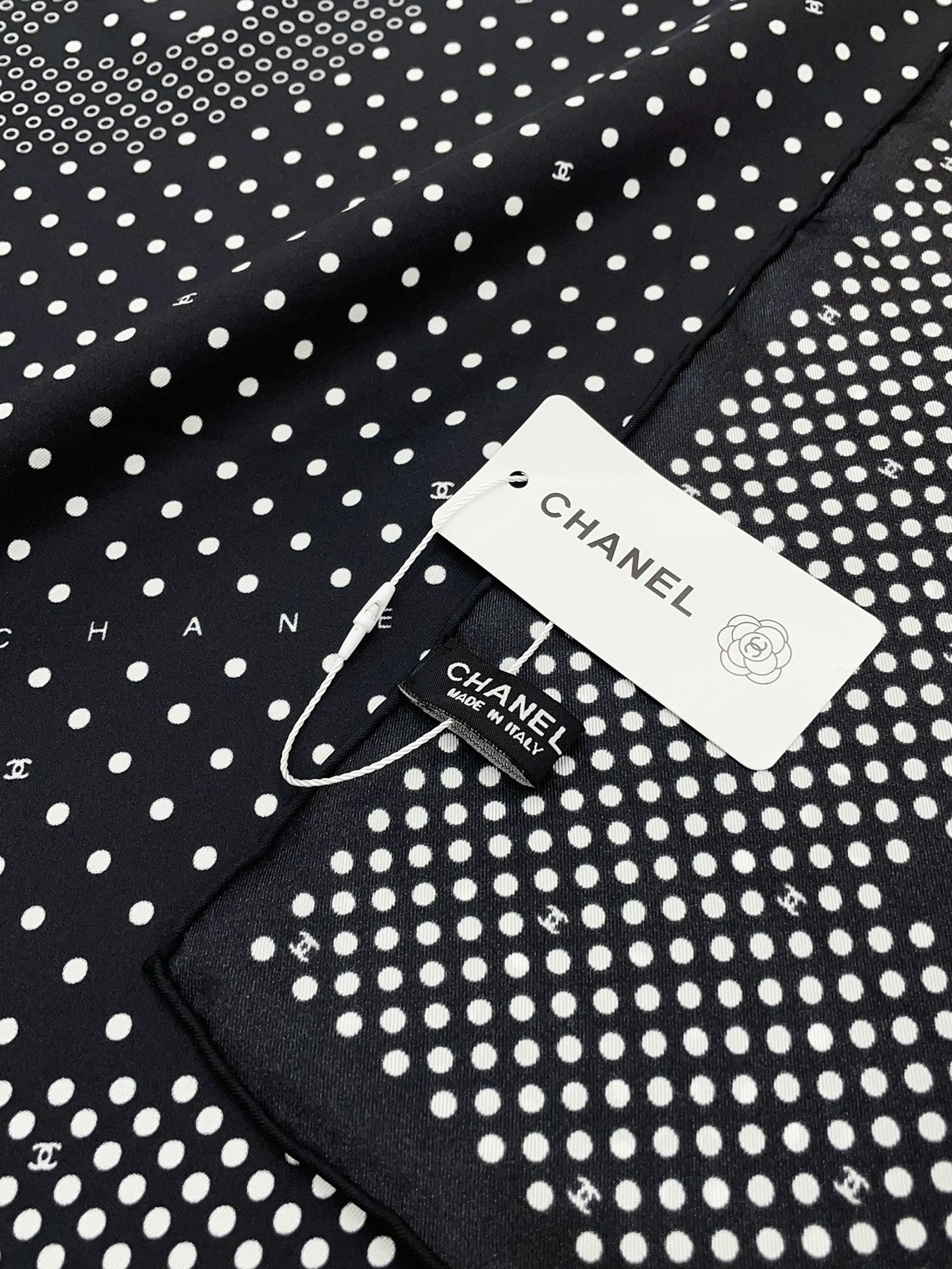 CC Square Scarf 90 CM In Black White Polka Dot Silk Twill 166291